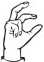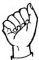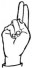 На ћирилици написано ПАУН ПУЗИЋ састоји се из 9 слова [?]. Исписано ћириличном једноручном азбуком за глувонеме: